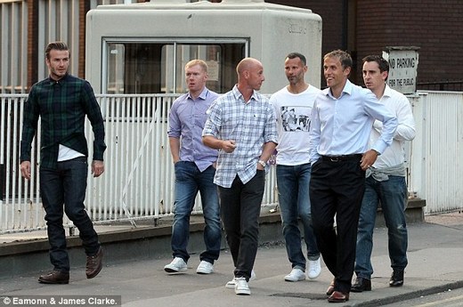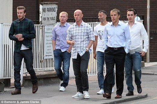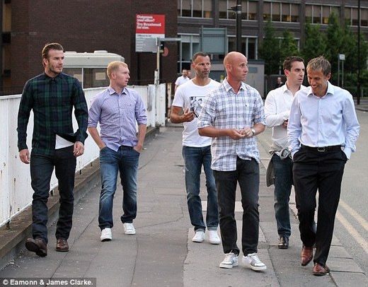 Class of '92 re-United: David Beckham enjoys a day in Manchester with former teammates Giggs, Butt, Scholes and the Neville brothers