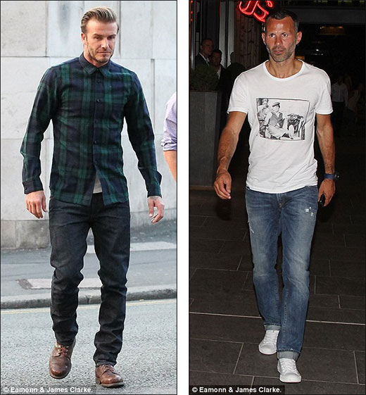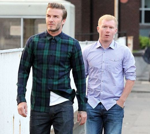 But David Beckham went back to his roots on Monday night as he headed out in his old haunt of Manchester with his former Manchester United team mates Ryan Giggs, Gary Neville, Phil Neville, Nicky Butt and Paul Scholes.