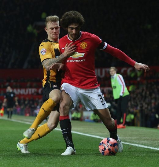 Seven minutes later, a neat move unhinged the Cambridge defence with Paddy McNair, excellent at right-back, and Mata ferrying the ball wide to Angel Di Maria with crisp passes. The Reds' record buy hung the ball up to the far post where Fellaini, on cue, nodded into the six-yard box for Mata to steer in off the underside of the bar.