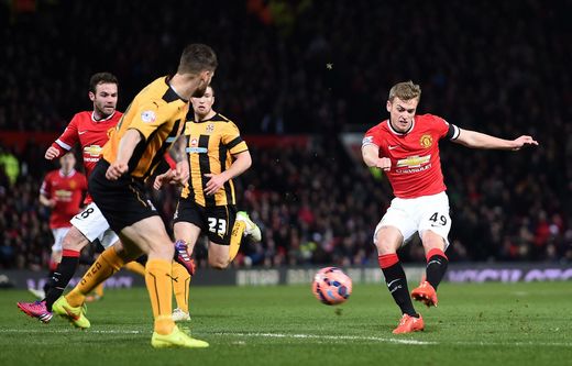United: De Gea; McNair, Smalling, Evans, Rojo (Young 81); Blind, Fellaini, Mata, Di Maria (Herrera 70); Rooney, van Persie (Wilson 66).