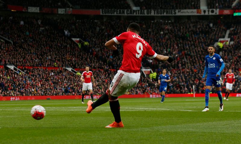Louis van Gaal had told his players prior to kick-off that they “cannot allow” Leicester to win the title at Old Trafford and the Reds were clearly in no mood to host a coronation, judging by the bright start that led to the deadlock being broken on eight minutes. The goal came from Anthony Martial, who met Antonio Valencia’s cross to execute a low near-post finish past Kasper Schmeichel. It was the 20-year-old’s 15th strike of the season and that means he is now United’s top scorer this season.