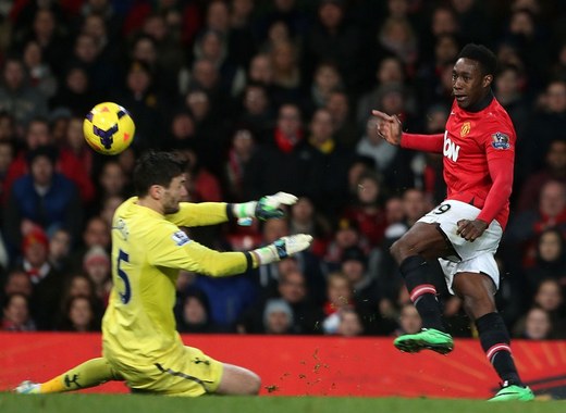 It prompted an instant response from the restart as Welbeck raced onto an Adnan Januzaj pass to calmly dink the ball over Lloris to crank up the volume at Old Trafford. Januzaj saw a shot skip just wide and Spurs were forced to defend for their lives in the closing stages. Substitute Ashley Young was clearly caught by a high tackle by Lloris but again referee Howard Webb decided against pointing to the spot with Lloris also saving well from Rooney and Nemanja Vidic before the Serbian headed over in injury time.