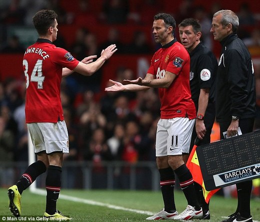 Sub-plot: Giggs fielded a new-look strike partnership when he handed Lawrence, 20, and 18-year-old Wilson their debuts. It was an unexpected, but welcome, move and the pair grabbed the opportunity with both hands. The question of whether Giggs would bring himself on was answered in fine style, the Welsh maestro rolling back the years with a 20-minute cameo performance of flair and artistry that was nearly capped off with a late free-kick goal.