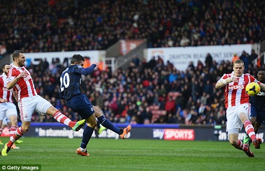 The match United had the majority of possession in the early stages with the howling gale at their backs, while Stoke’s tactic of pumping the ball upfield high into the wind came to nothing. But the Reds paid for failing to capitalise on their dominance when Charlie Adam’s free-kick – questionably won by Jonathan Walters against Chris Smalling – put Stoke ahead against the run of play. Robin van Persie’s equaliser was quickly overturned by a screamer from Adam, and the hosts stayed on the front foot until a late siege on Asmir Begovic’s goal, with the Stoke keeper pulling off an incredible save to push Wayne Rooney’s free-kick onto his post.