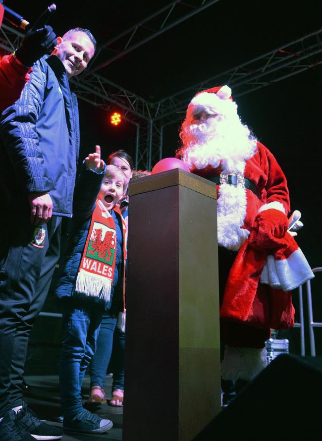 Ryan Giggs, Marley Nicholls and Santa switch on Newport’s Christmas lights.