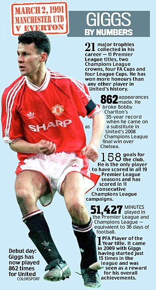 It seems appropriate, here, to mention some Ryan Giggs statistics. He has played 862 times for United since his debut against Everton on March 2 1991 - 20 years ago. He has won 11 Premier League titles, four FA Cups, four League Cups, eight Charity Shields, two Champions Leagues, one Super Cup and one Club World Cup.