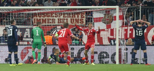 However, the advantage lasted a mere 22 seconds after the restart in a dramatic, frenetic and ultimately decisive 10-minute spell in which Mario Mandzukic and Thomas Muller put the home side in front. Arjen Robben then added a third on 76 minutes to all but extinguish United hopes of progress.