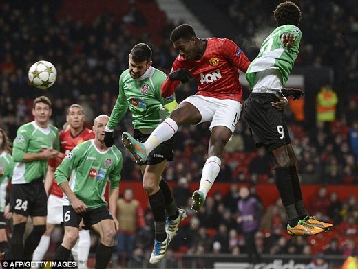Danny Welbeck is an experienced continental campaigner by comparison and he almost notched the third Champions League goal of his career early on when he made an intelligent run to the near post and glanced a header fractionally wide from Ryan Giggs’ right-wing corner.