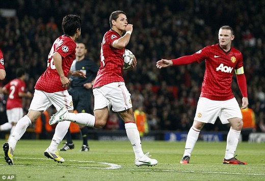 Sir Alex's side found themselves in the familiar position this term of needing to stage a comeback and, within five minutes, the deficit had been halved. Robin van Persie was up-ended after showing neat skill on the left but referee Milorad Mazic allowed the advantage with Shinji Kagawa in possession. The Japan international lofted across for Hernandez to stretch and head goalwards with Beto only able to help the ball over the line.