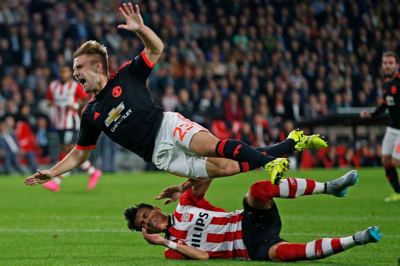 Memphis’s name was greeted with a huge roar from the home fans when it was announced over the PA system, and he also stirred a reaction from the 1,600 travelling fans by fizzing in the first menacing cross of the match. PSV goalkeeper Jeroen Zoet snapped up that low ball with Ander Herrera closing in but he had little else to do before the first half had a lengthy pause of almost 10 minutes due to Shaw’s awful injury and the need to prepare him carefully for a stretcher journey from the pitch. When the stricken left-back was eventually carried off, it was to warm applause from all sections of the crowd.