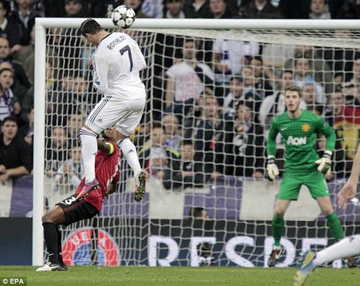The Spanish stopper was the hero soon afterwards with a superb fingertip save as he turned Fabio Coentrao’s curling drive onto the post after good work by Ronaldo down the left. Raphael Varane then headed over from a free-kick before Mesut Ozil was allowed to run clear to the edge of the area. Michael Carrick came to the rescue with a fantastic block as Ozil took aim.