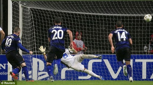Robin van Persie’s smartly-taken leveller, Wayne Rooney’s penalty conversion and a close-range finish from Chicharito gave the Reds a fourth straight Group H victory, after Alan’s spot-kick early in the second period had given the hosts a deserved lead.
