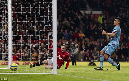 Before the break, Nani let fly with a speculative 25-yard effort, Rooney forced Jaaskelainen into a smart stop from similar distance and Anderson squandered a half-chance after linking well with Hernandez. In contrast, West Ham looked toothless, failing to test Anders Lindegaard in the first period.