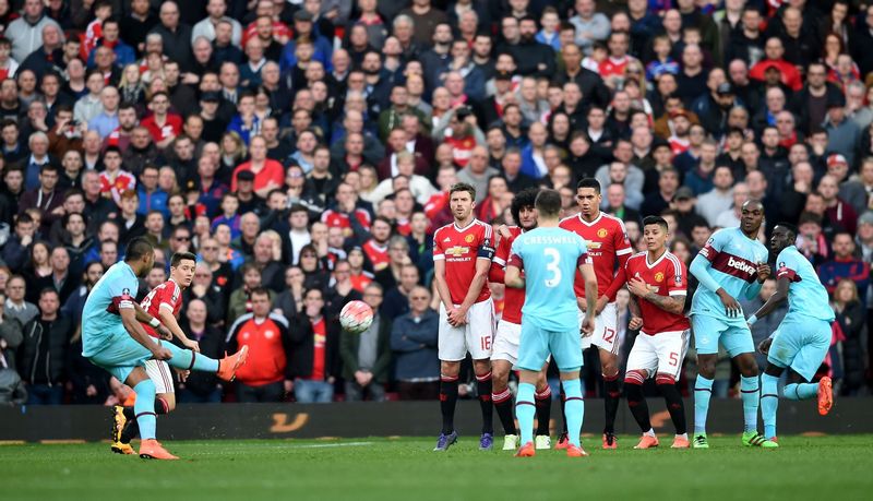 The Frenchman took his time before unleashing a ferocious free-kick that flew past De Gea and sparked 'Wembley' songs from the jubilant away end. Van Gaal pitched Memphis Depay and Bastian Schweinsteiger into action but Guillermo Varela needed to be fleet of foot to deny Payet a one-on-one situation seconds later.