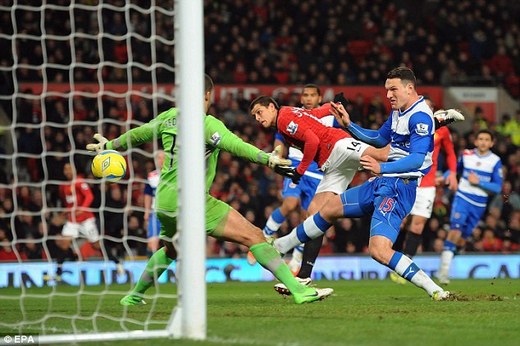 Again Nani was involved, speeding down the right flank and curling in a magnificent cross which Chicharito reached ahead of Federici to nod into the untended goal. Just as it seemed that United's progress thereafter would be a smooth process, however, Reading demonstrated the pluck which has punctuated their season to date.