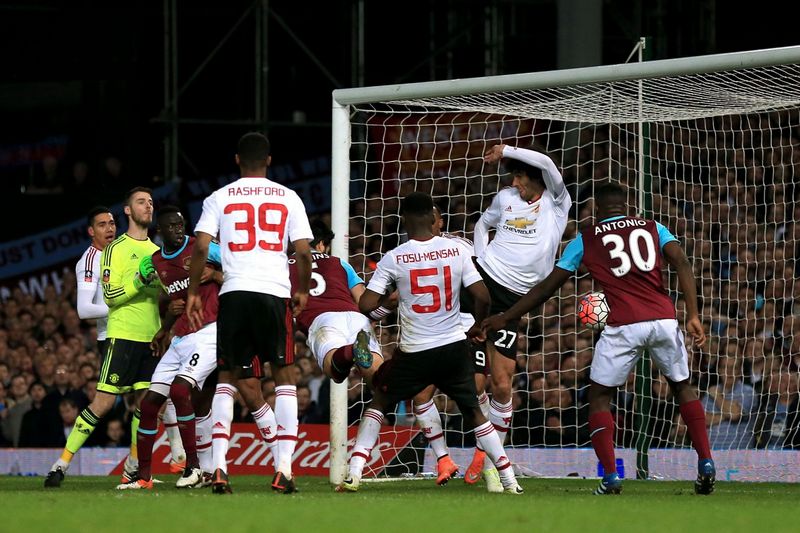 West Ham started the brighter of the two teams and Enner Valencia found himself in space in the box but shot weakly at De Gea. But the Reds gradually settled into the game, with Fellaini firing a shot that flicked off Angelo Ogbonna’s boot and was then tipped over by Darren Randolph.