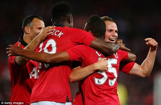 United: Lindegaard; Rafael, Ferdinand (M Keane 46), Jones, Evra (Fabio 76); Zaha, Carrick (Anderson 71), Cleverley, Lingard; Giggs (van Persie 62), Welbeck (Januzaj 71)