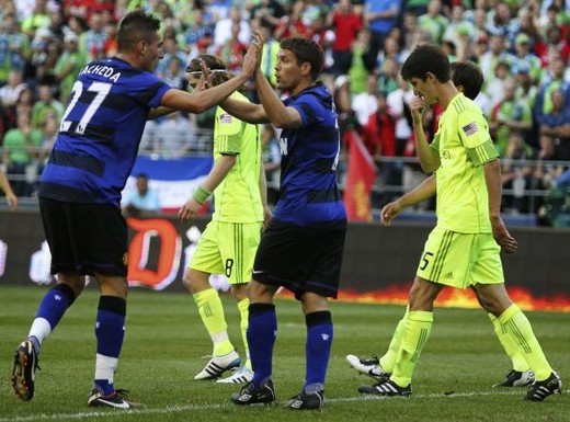 Owen should have doubled the lead on 43 minutes when he went one-on-one with Keller but shot into the stopper’s legs – Michael then had the misfortune of inadvertently clearing Nani’s effort off the Sounders’ line from the resulting corner.