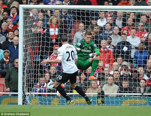 Wojciech Szczesny prevents Van Persie from scoring from close range