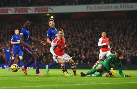 Danny Welbeck, facing United for the first time since leaving Old Trafford in the summer, had a shot blocked in the fourth minute, before Per Mertesacker headed wide. Welbeck then missed the target with a header of his own and, with Arsenal cranking up the pressure, the former Reds forward teed up Jack Wilshere, who forced a brilliant point-blank range save from United’s outstanding no.1 De Gea.