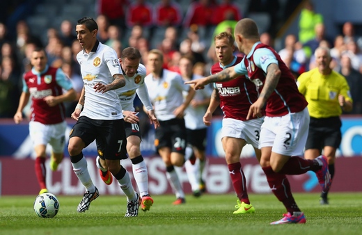 After the restart, the Reds came out on the front foot, and again looked to Di Maria for inspiration. The midfielder's burst into the area was picked up by Rooney, but Jason Shackell's last-ditch tackle prevented a debut goal. With United applying pressure, Di Maria got the better of Keiran Trippier by the corner flag, and did well to squeeze the ball out towards Rooney. After Burnley failed to clear, the ball eventually fell for van Persie, whose shot was cleared off the line by Marney.