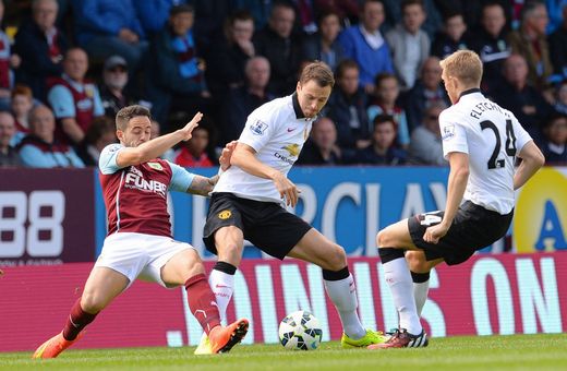 The vociferous Turf Moor crowd was almost celebrating a goal as early as the third minute, after Phil Jones brought down Lukas Jutkiewicz on the edge of the area. Former United midfielder David Jones stepped up to take the resulting free-kick, and saw his curling effort come crashing back off the bar. Jutkiewicz was the Clarets’ most potent threat early on, and found himself one-on-one with David De Gea just seconds later, but the Spaniard stood tall to avert the danger.