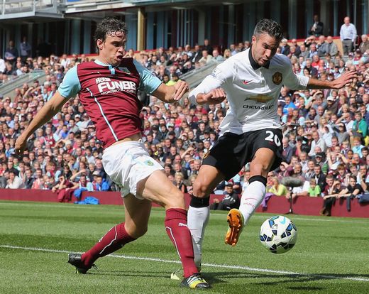 Equally keen to impress was Di Maria, whose perfectly-weighted ball to van Persie created a great opening on 14 minutes. The striker brought the ball down before hitting a shot which was well saved by another former Red, Clarets goalkeeper Tom Heaton.