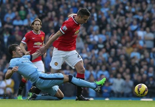 The opening exchanges were fairly equal thereafter with both sides enjoying little spells of good possession. Aguero looked lively for City and it was he who forced David De Gea into his first save of the game on eight minutes when he created space to shoot from a tight angle. At the other end Januzaj could have done better when he was well found by van Persie’s knock-down but he dragged his effort wide.