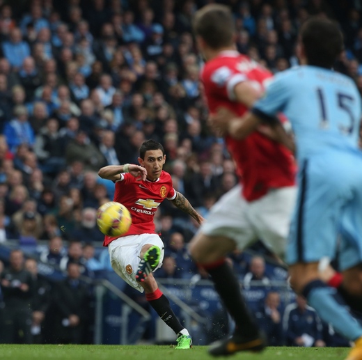It was United who had the earliest sight of goal, inside the opening 60 seconds, when Marcos Rojo jumped to meet a Di Maria free-kick and head goalwards. Joe Hart made the save but the flag was raised for offside.