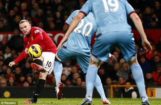 Van Persie hit a free-kick straight at Jaaskelainen after being upended 20 yards out by Joey O’Brien. Then Rooney drew a full-length save from the Finn when he curled an effort towards the far post and West Ham somehow managed to avoid conceding from the resulting corner when both Hernandez and Jonny Evans went close during a frantic goalmouth scramble.
