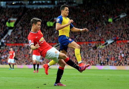 It was one-way traffic from United in the opening 15 minutes. Ashley Young, Falcao, Smalling and Juan Mata all blazed efforts goalwards, with Mata's free-kick forcing Gunners goalkeeper David Ospina into a smart save. Arsenal then began to exert some pressure of their own, although any momentum they may have gained was eradicated in spectacular fashion on 30 minutes when Herrera volleyed home first time after superb work from Young down the left.