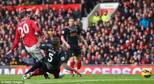 Van Persie had a shot strangled at source by a Steven Gerrard block from a Danny Welbeck lay-off but the Holland international made no mistake when presented with the first real chance nine minutes later. A nice move led to Tom Cleverley switching the ball wide to Evra. The full-back disguised his cross, drilling it straight to van Persie, who swept in the sweetest of finishes.
