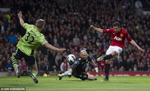 After Wayne Rooney's sublime crossfield ball had released Antonio Valencia, the Ecuadorian teed up Rafael, whose deep, first-time cross was beautifully cushioned across goal by Ryan Giggs for van Persie to gleefully sidefoot home.