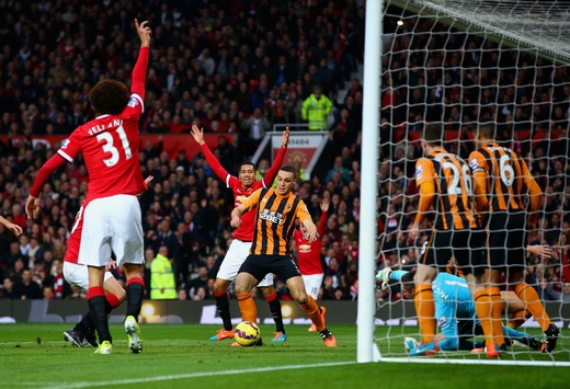 The Reds were exceptional and had already seen a penalty appeal for a Curtis Davies handball waved away and Rooney curl wide when Smalling made the breakthrough. Panic ensued at the back for the Tigers from the defender's header and, when Allan McGregor spooned it straight back to the centre-back, he shot with accuracy. It looked over the line as McGregor carried it backwards and goalline technology swiftly proved this was the case - the first goal United have been awarded in this manner.