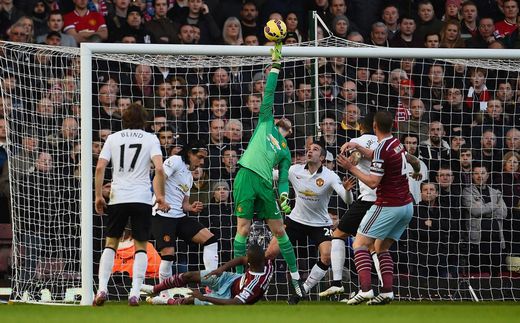 West Ham’s pressing was particularly effective in the early exchanges and United struggled to retain possession, although van Gaal’s men improved after 25 minutes and started to show more creativity in the final third. The hosts were still on top, though, and went close to scoring just after the half-hour mark when James Tomkins’ downward header at the back-post was booted clear by De Gea.
