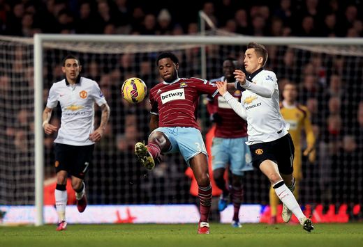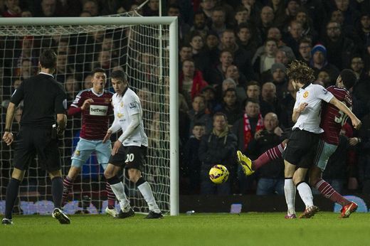 Although van Gaal's men made an improved start to the second half, with Januzaj shooting at goal from the edge of the area, West Ham took the lead when a long ball into the box fell kindly to Senegalese midfielder Cheikhou Kouyate, who did brilliantly to take three touches and hit a deflected volley past De Gea from around 10 yards. The Reds responded well and Radamel Falcao hit a 20-yard shot wide of goal before Robin van Persie latched onto Di Maria’s floated pass to chest and volley at Adrian. The Dutchman playing his 100th game for United might have done better with another excellent opportunity in the 56th minute, when taking a touch that allowed Tomkins to block his shot inside the area.