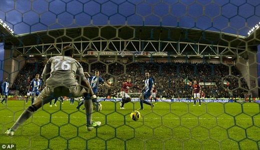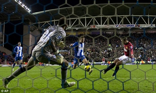 It was the right call by the officials but Giggs' pass to create the opening was superb and the 39-year-old was busy turning back the clock on the left wing and being serenaded by the away supporters. Wigan kept possession impressively but, a wild shot from Jean Beausejour aside, there was little threat and the Barclays Premier League leaders began to impose themselves on proceedings.
