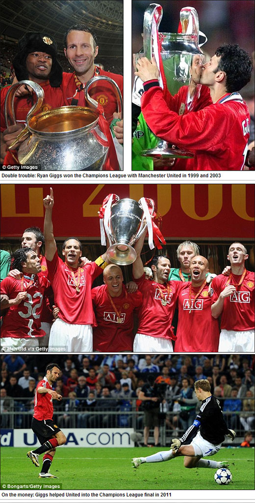 Giggs is a two-time winner of the Champions League with United having played in both finals against Bayern Munich in 1999 and Chelsea in 2008.