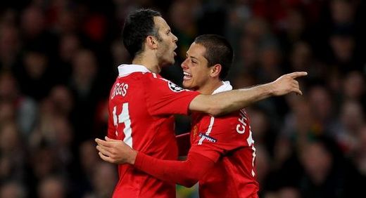 After setting up Wayne Rooney for the only goal in the first leg, Giggs provided the assist for Javier Hernandez to double the aggregate score here on 43 minutes.