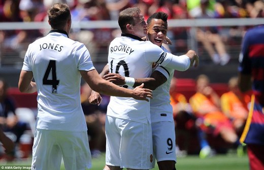 Wayne Rooney and substitutes Jesse Lingard and Adnan Januzaj fired Manchester United to a 3-1 victory over the current European champions Barcelona in a hugely enjoyable contest at Levi’s Stadium on Saturday.