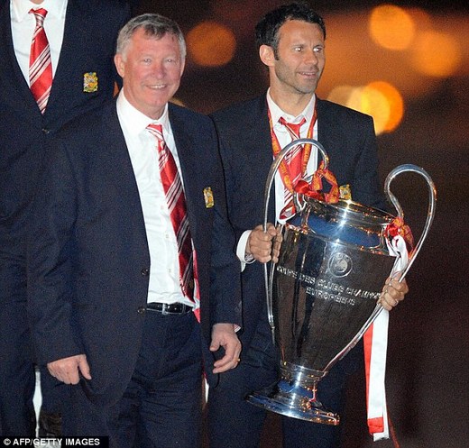 Been there, done that: Giggs (right) holds the Champions League trophy in 2008 after beating Chelsea in Moscow