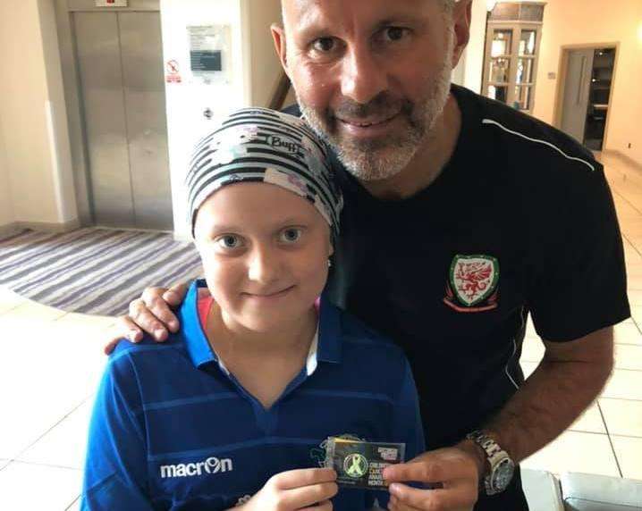 During her visit down South, Maisy also met some of the Wales men's team - including manager Ryan Giggs who she handed over a special Childhood Cancer Awareness Month badge to.