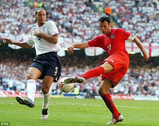 Ryan Giggs in action for Wales against England in 2006 - England won the World Cup qualifier 1-0