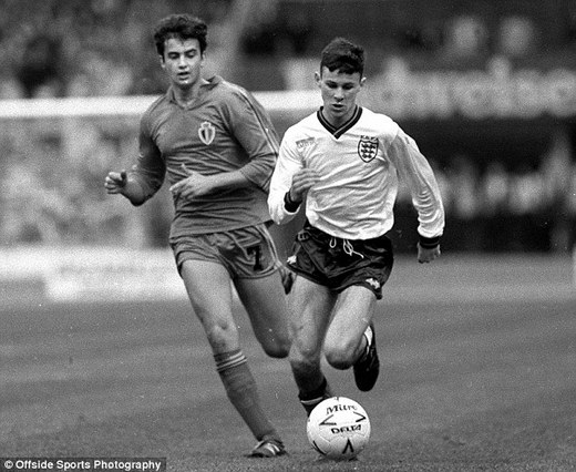 Ryan Giggs breaks clear of a defender as England schoolboys take on Belgium in March 1989