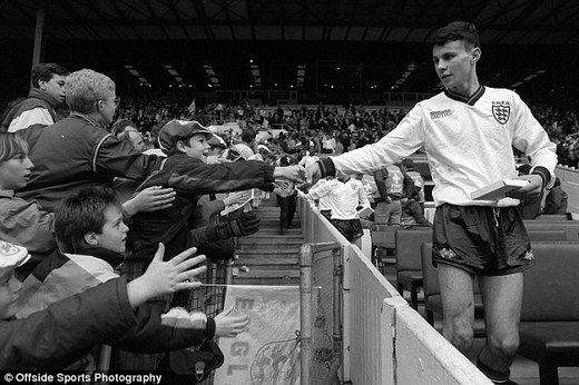A young Ryan Giggs shakes hands with fans after playing for England schoolboys against Belgium in 1989
