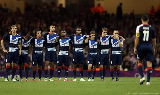It had to come down to penalties. Jessica Ennis, Greg Rutherford and Mo Farah had shown the way. Unfortunately, the footballers could not follow.