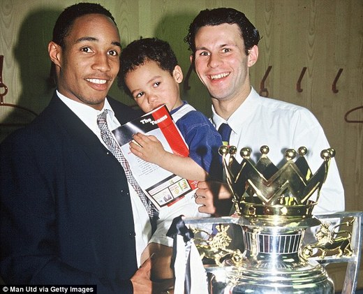 Ryan Gigss with Manchester United team-mate Paul Ince and son Tom