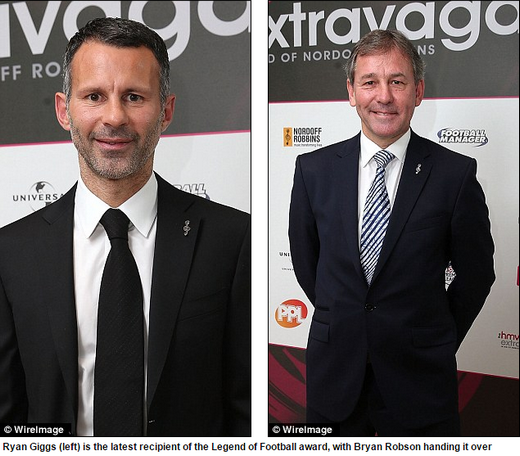 But it was former United and England captain Bryan Robson who handed over the award to Giggs, a year after Brazil legend Pele was honoured in the same way.