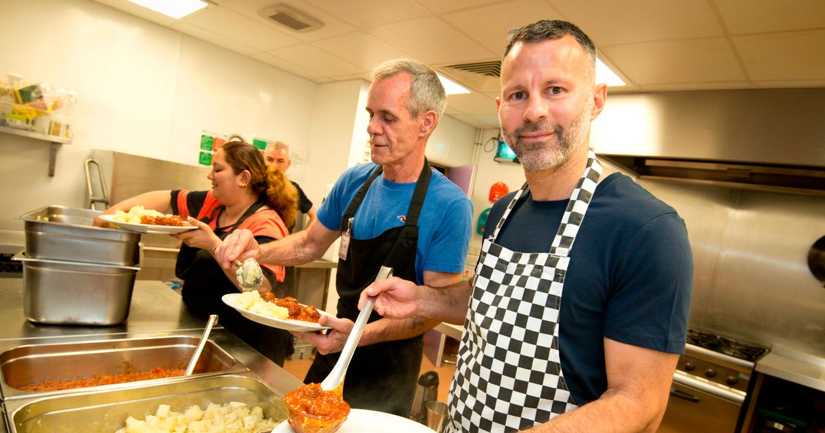 Ryan Giggs serves meals to homeless people at the Booth Centre